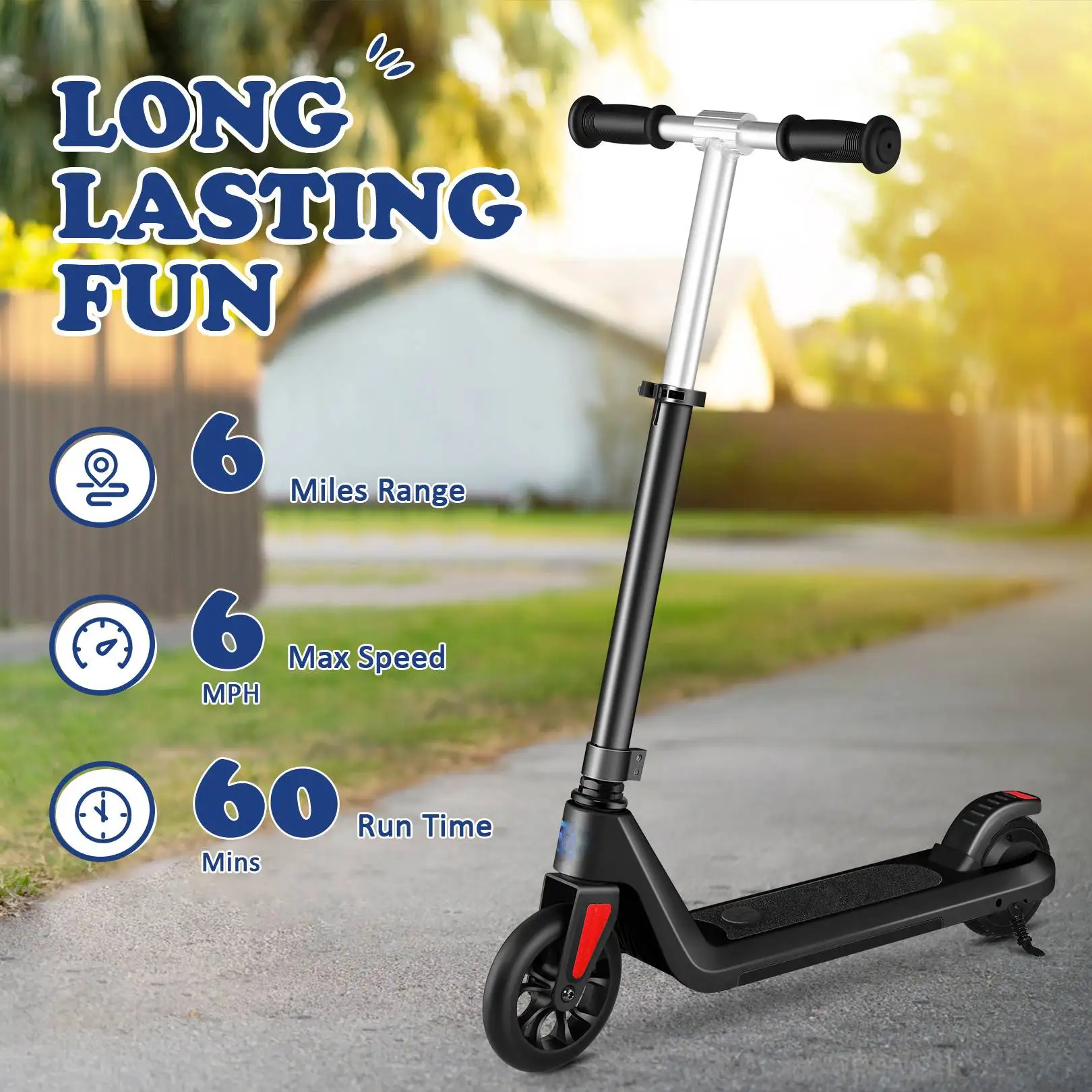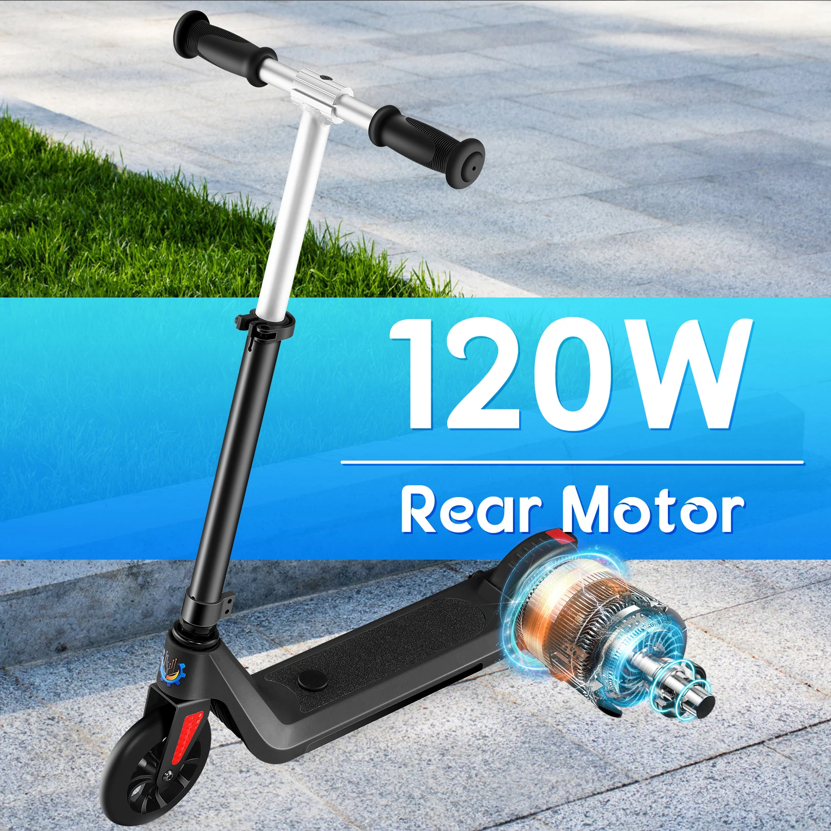 Electric Scooter Max 6 MPH Power 120W Rear Motor For Kid Age 6-12 Child Commuting E-Scooter With Adjustable Height & Deck Light