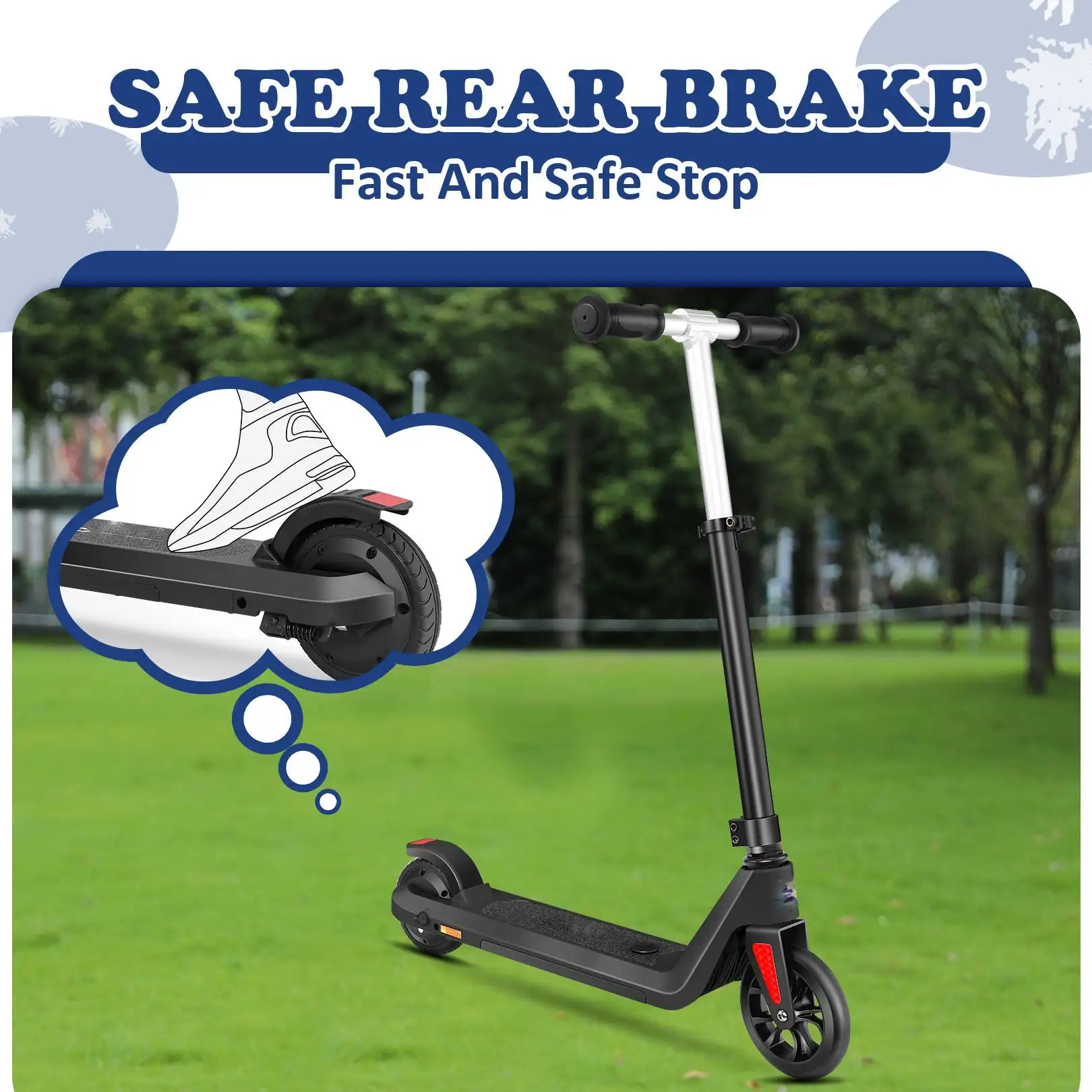 Enjoy Safe Riding: Safety is our top priority. The Caroma electric scooter for kids features a Non-Zero Start function to prevent accidental starts; the motor activates only when the speed reaches 1.8 mph. The non-slip rubber handle offers a comfortable and sturdy grip, while the rear fender brake ensures quick and safe stops. All the Caroma kids electric scooter has passed UL 2272 certification, ensuring greater safety for children.