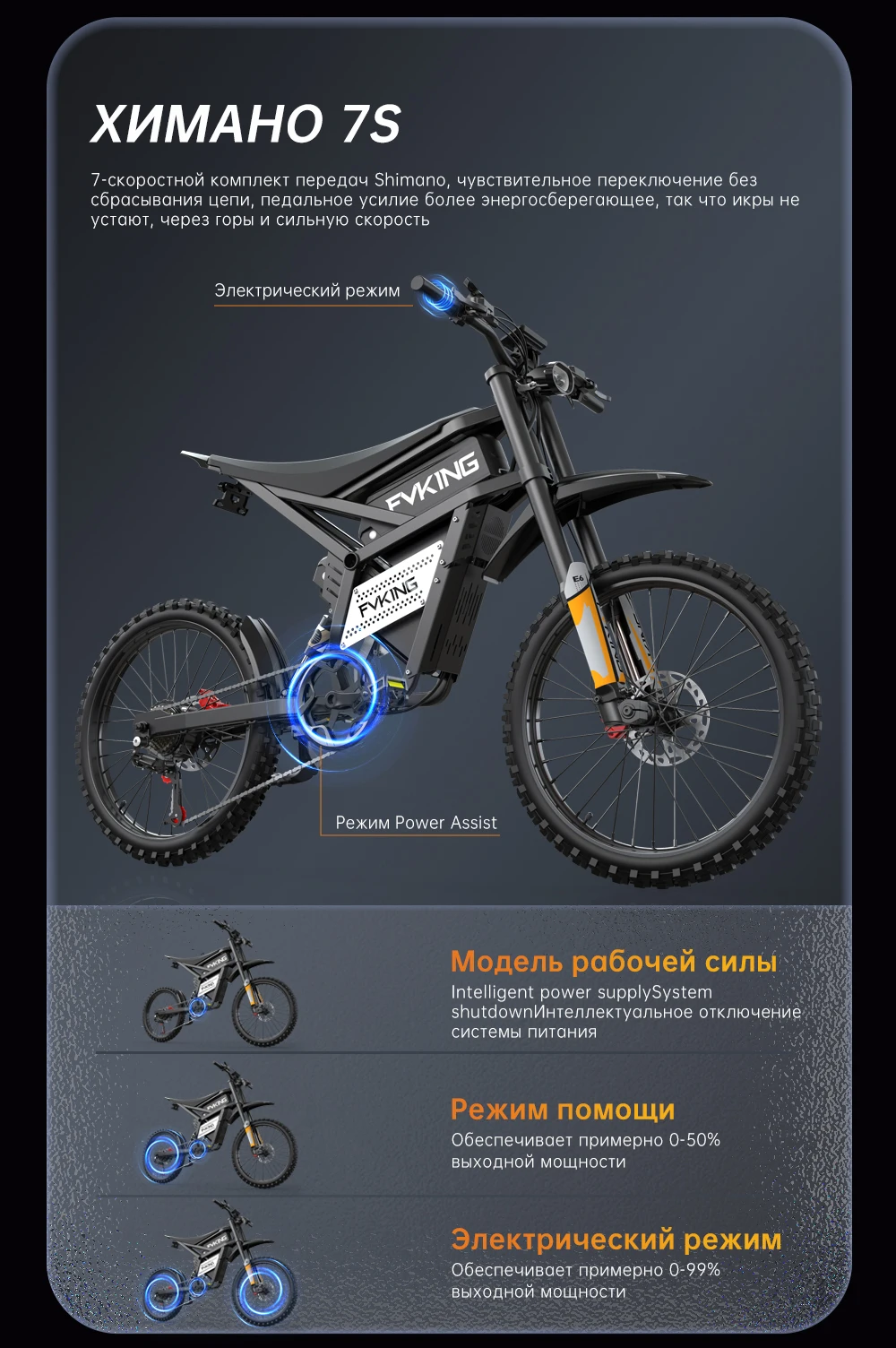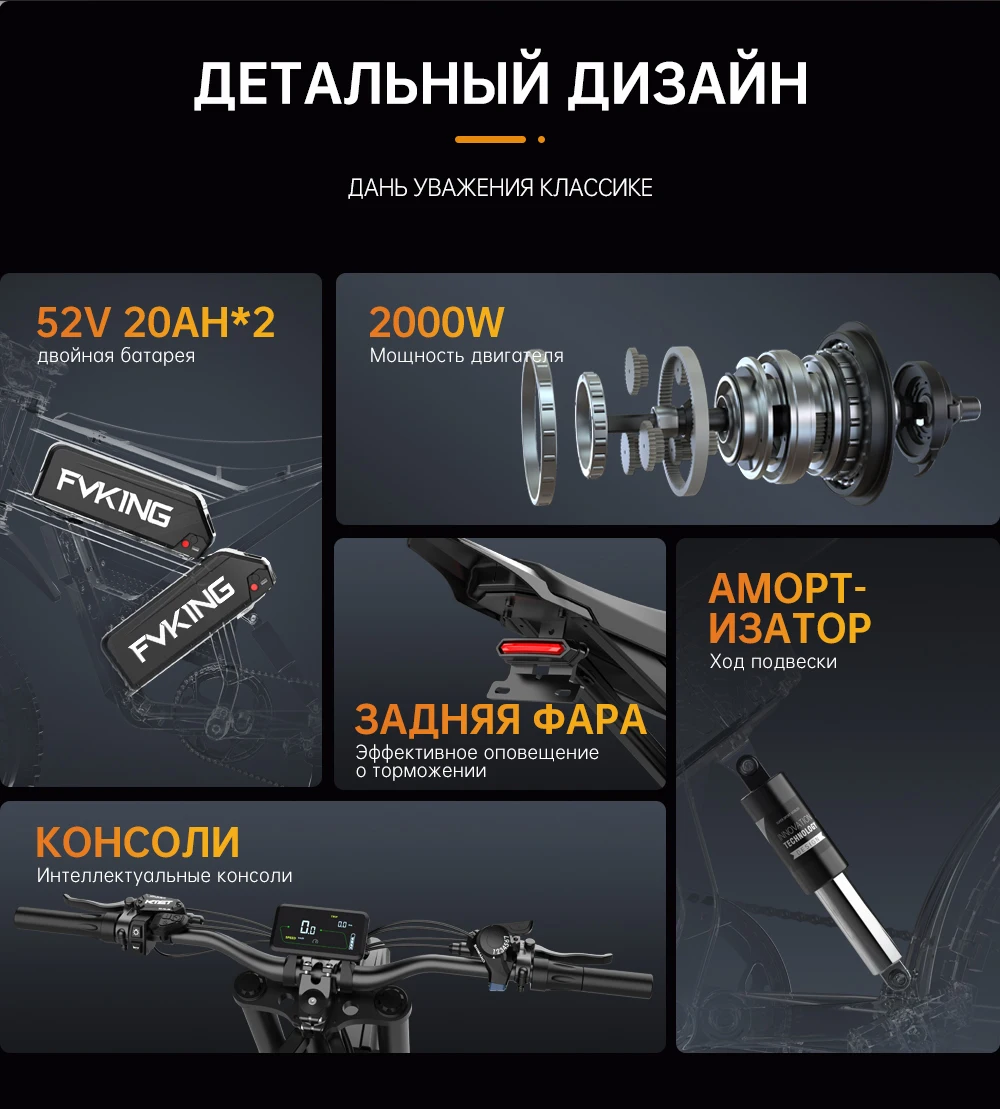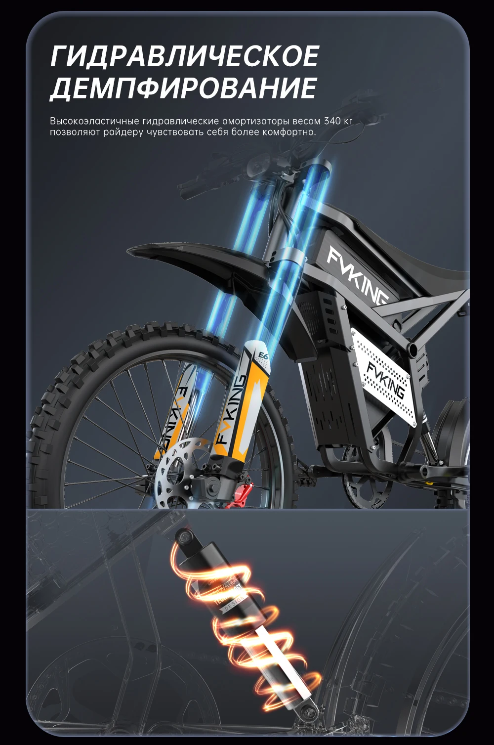 FVKING E6 Electric Bike Adults 3000W Peak Gear Hub Motors Electric Motorcycle 52V32AH Battery Speed 60Kmh Mountain E-bikes GT73
