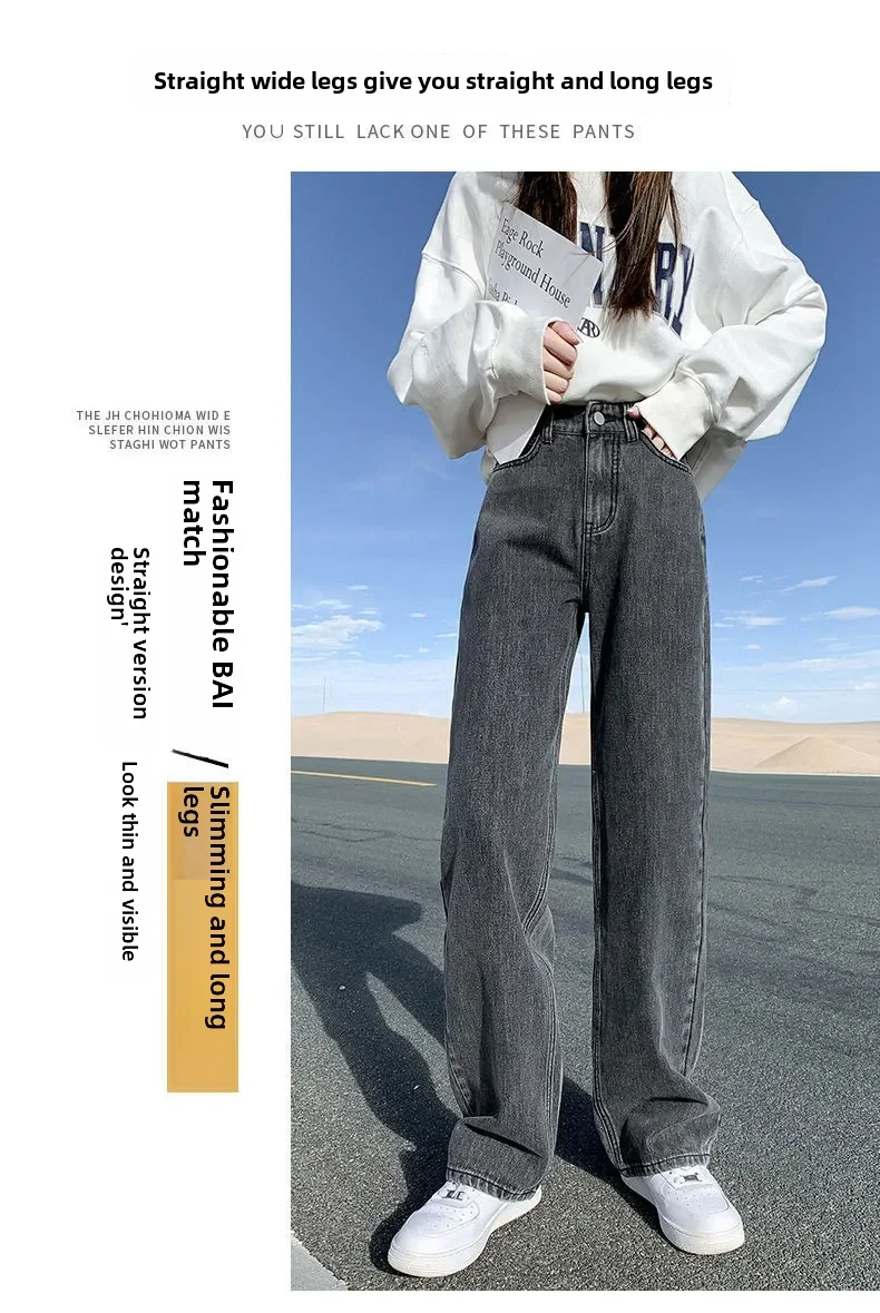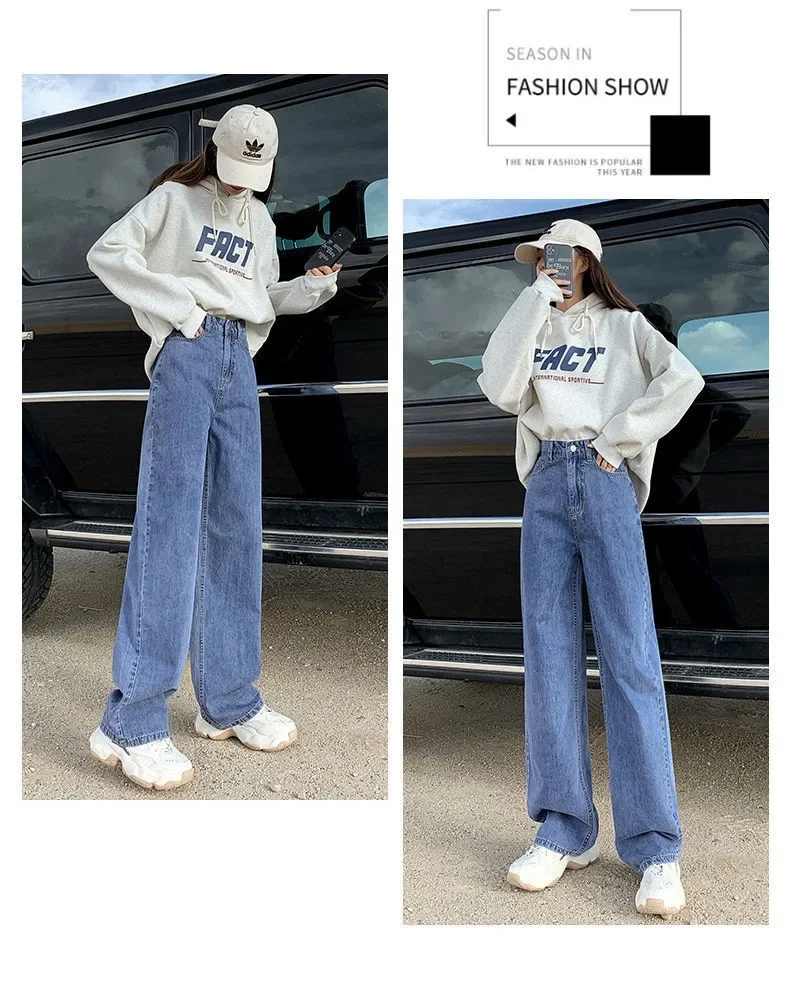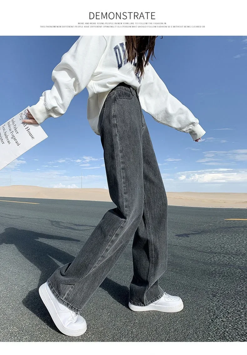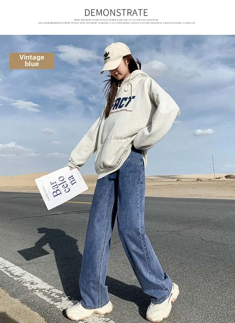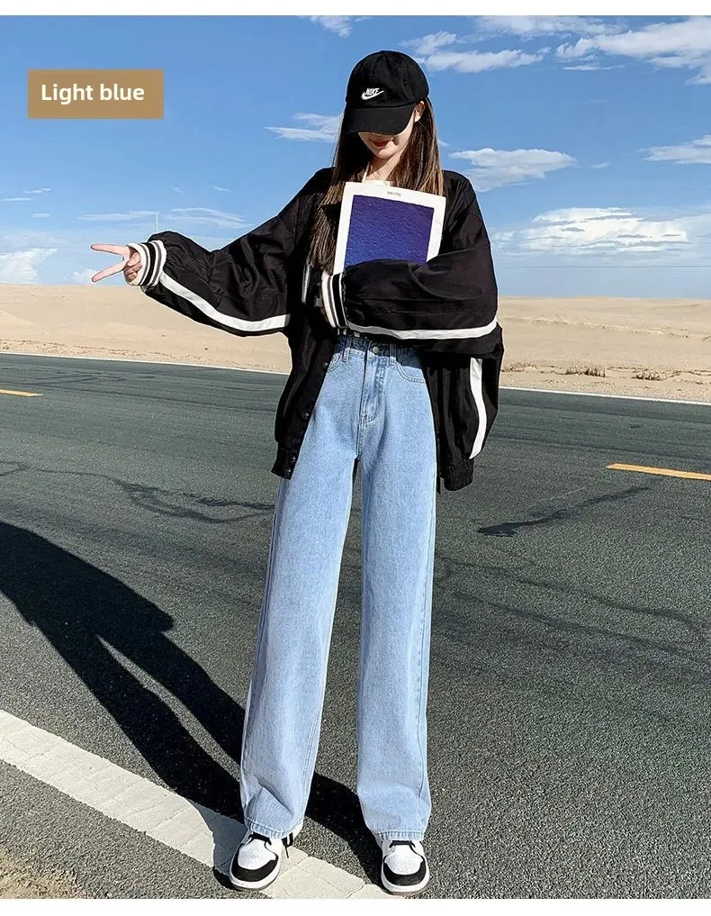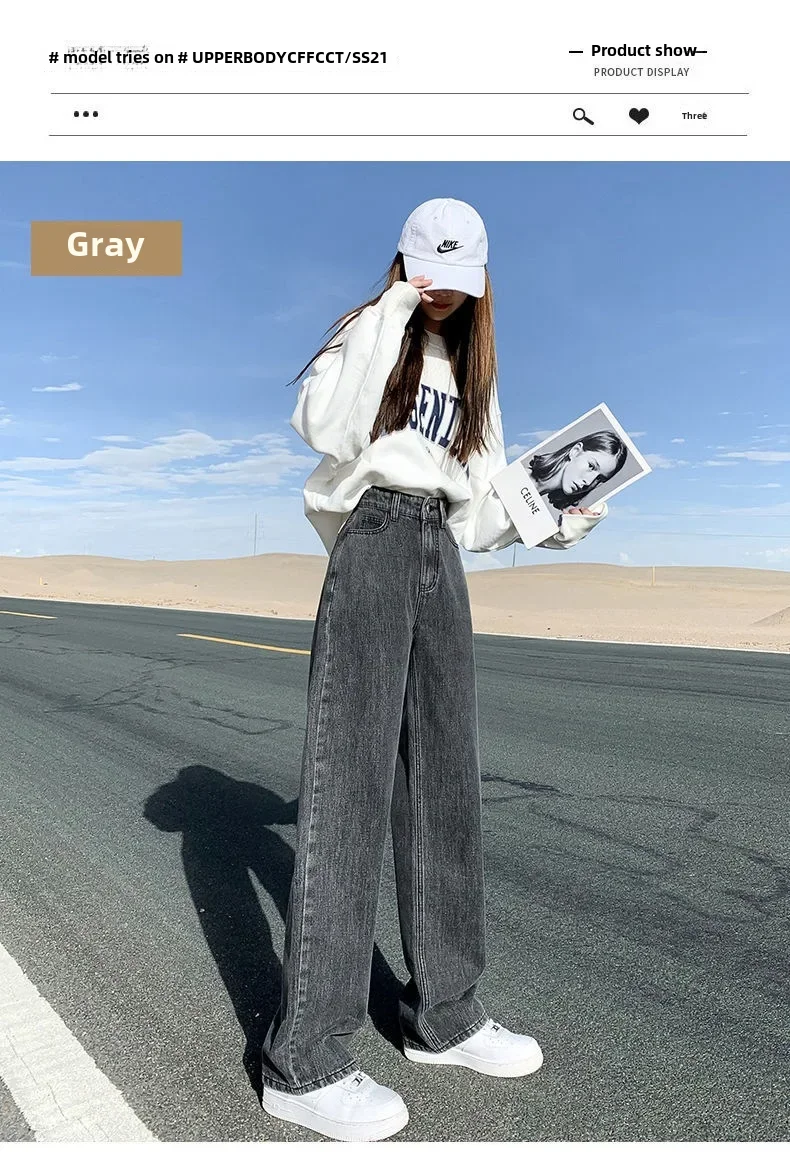 Korean Style High-waisted Slimming Wide-leg Jeans For Women 2021 Autumn New Versatile Loose-fit Straight-leg Floor Pants