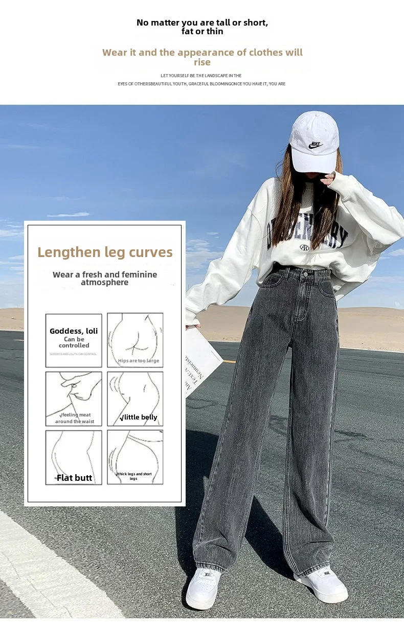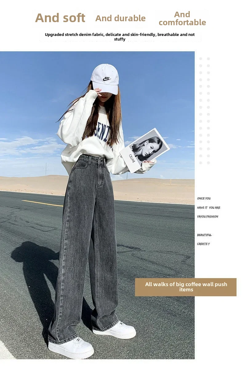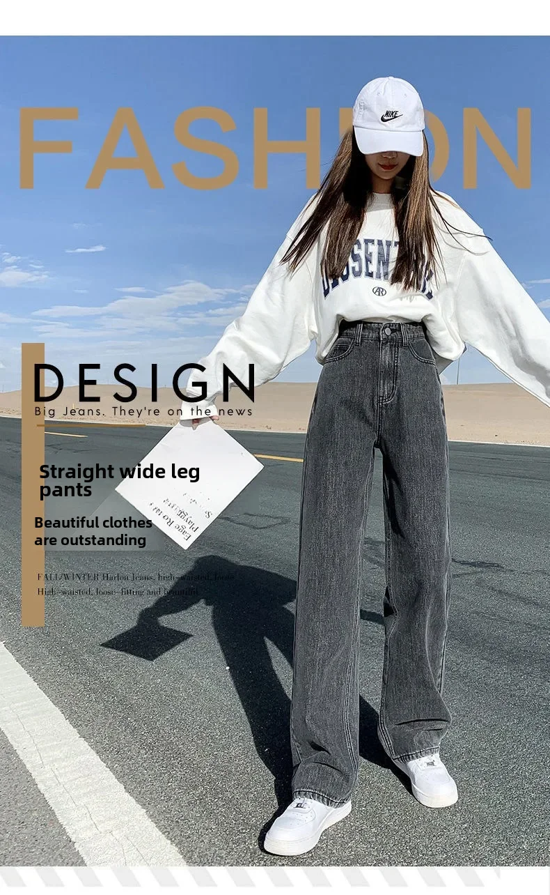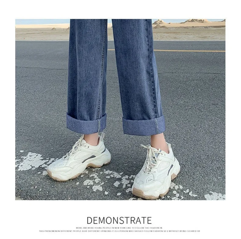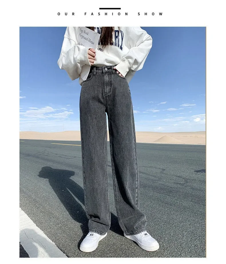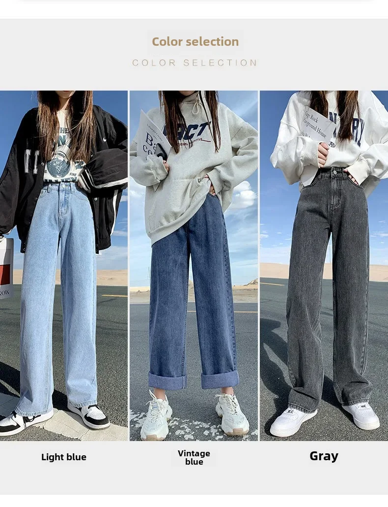 Korean Style High-waisted Slimming Wide-leg Jeans For Women 2021 Autumn New Versatile Loose-fit Straight-leg Floor Pants