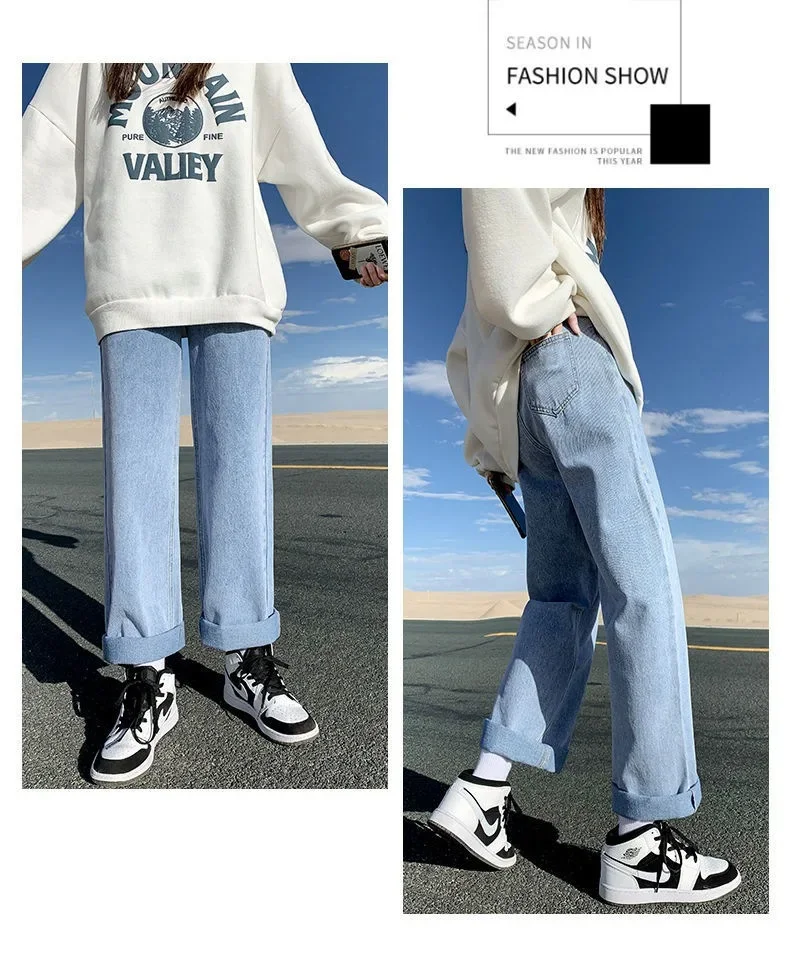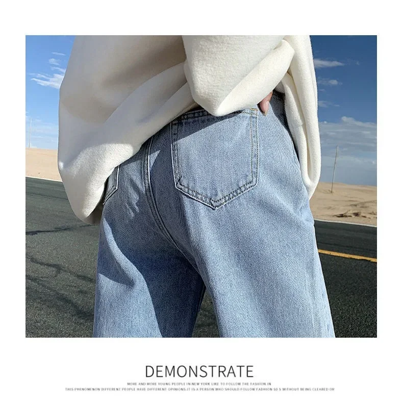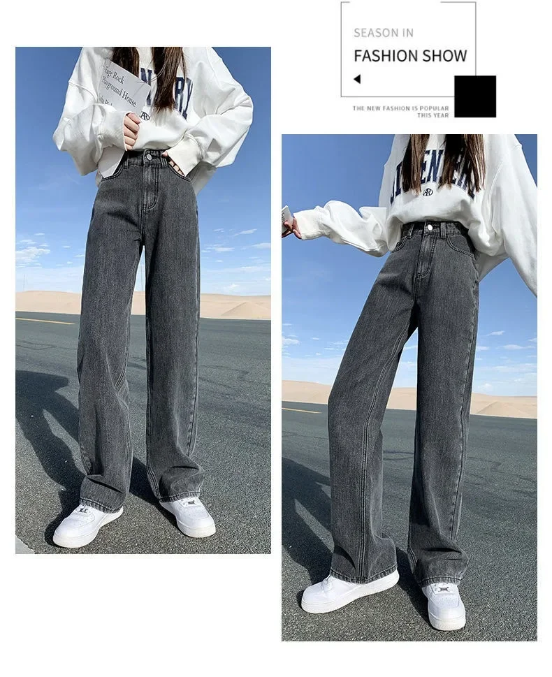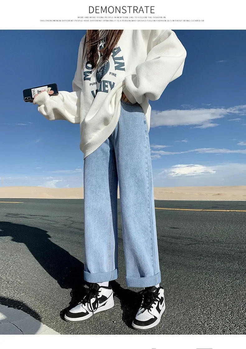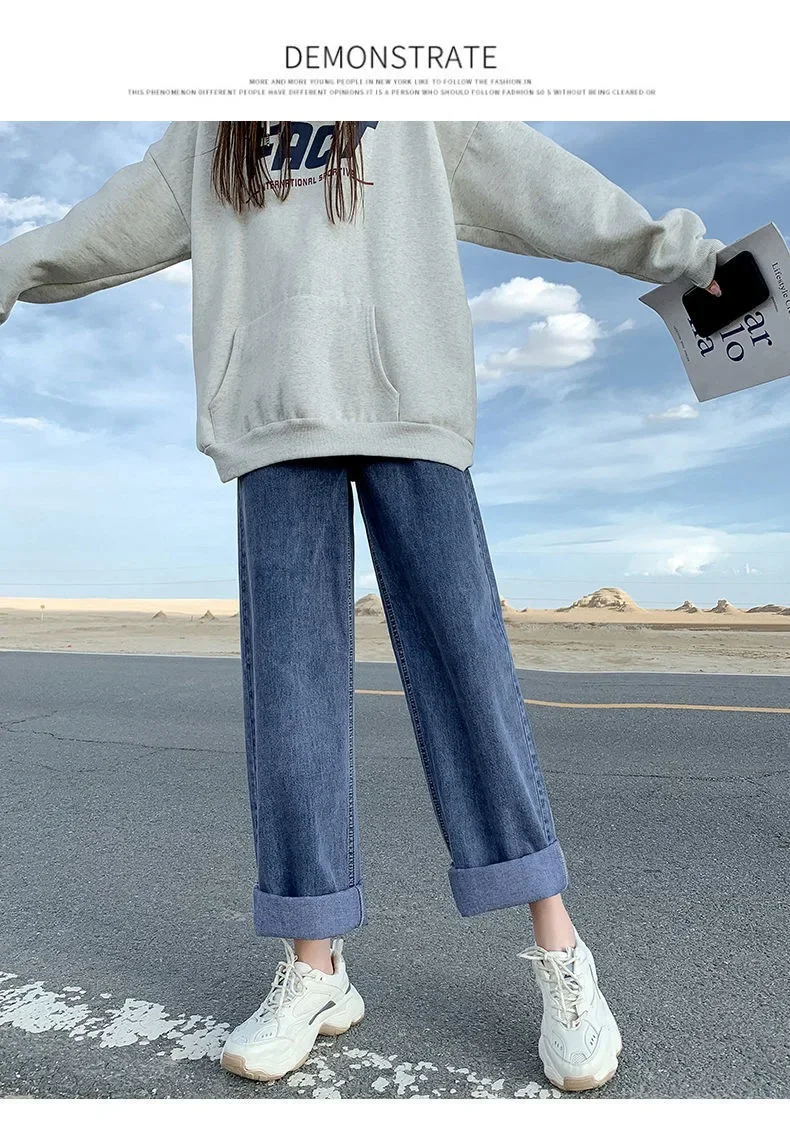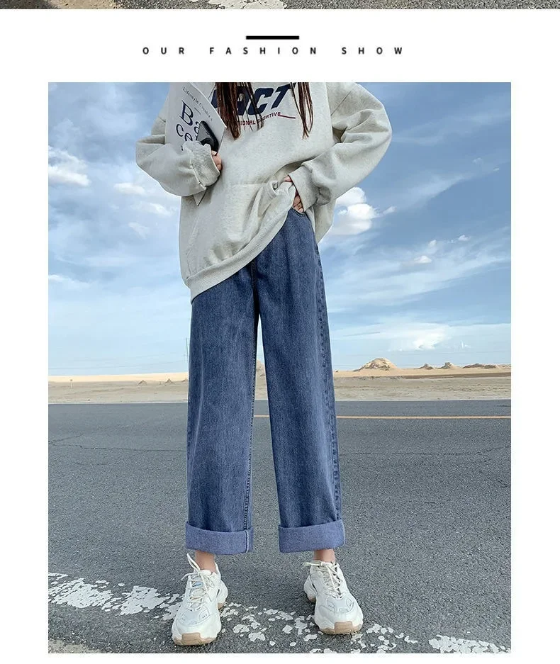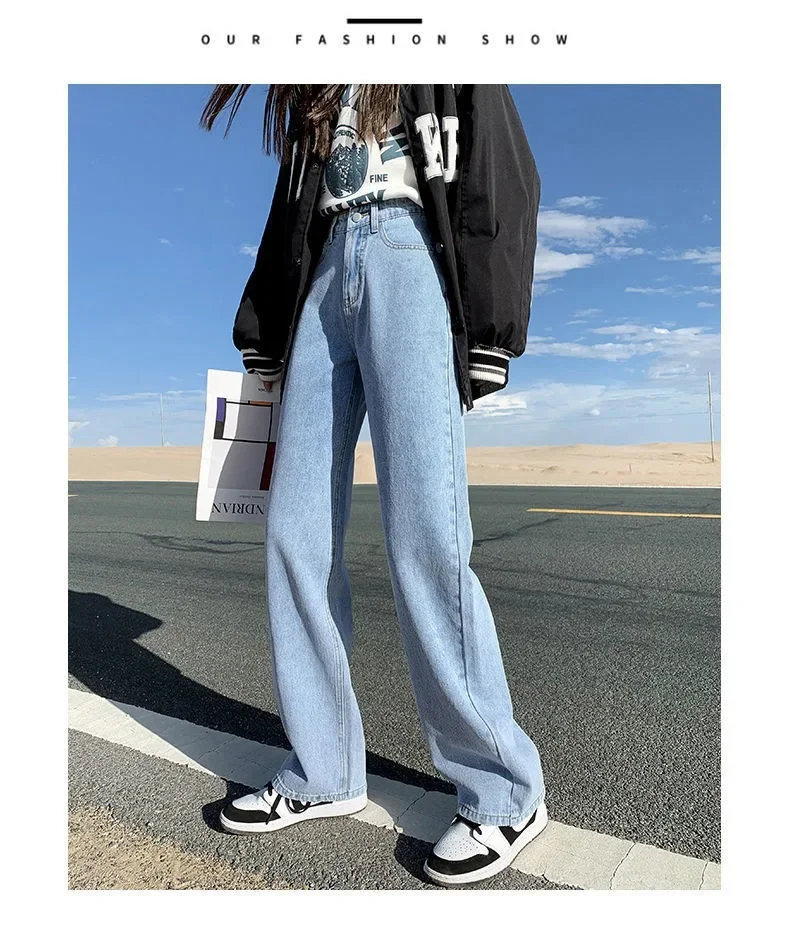 Korean Style High-waisted Slimming Wide-leg Jeans For Women 2021 Autumn New Versatile Loose-fit Straight-leg Floor Pants
