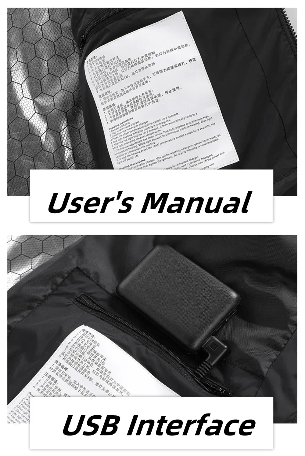 Men 21 Areas Heated Jacket USB Electric Heating Vest For Women Winter Outdoor Warm Thermal Coat Parka Jacket Unisex