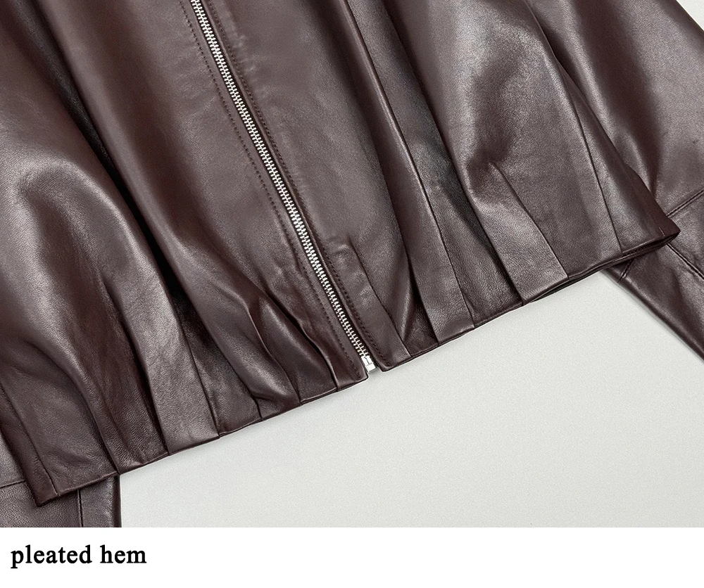 Natural Leather jacket For Women Lambskin Bomber Biker Jacket Long Sleeves 100% Sheepskin Leather Coat Folded Short Tops Woman