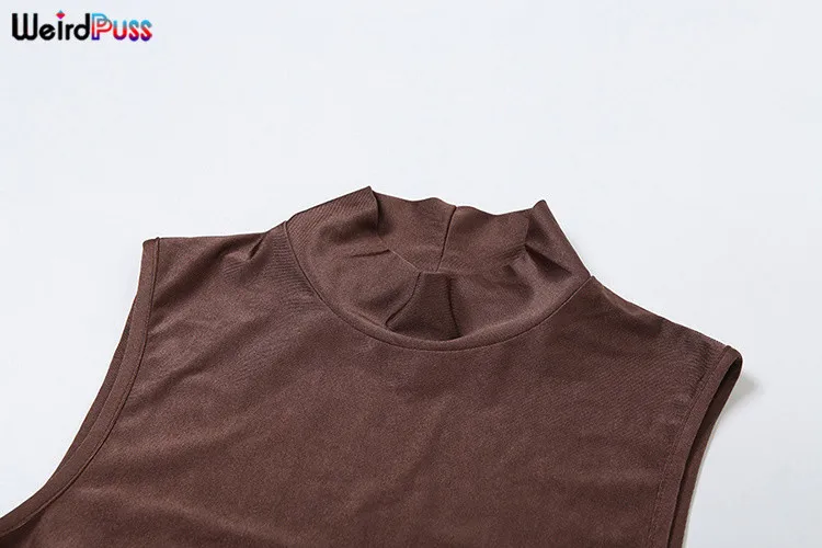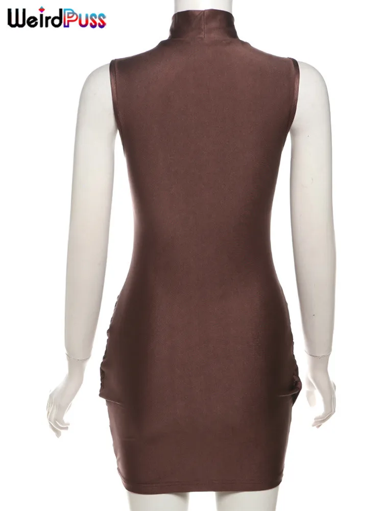nibber Cross Ruffles Mini Dress Woman Summer Sexy Solid Half High Collar Sleeveless Trend Chic Party Clubwear Skinny Bodycon