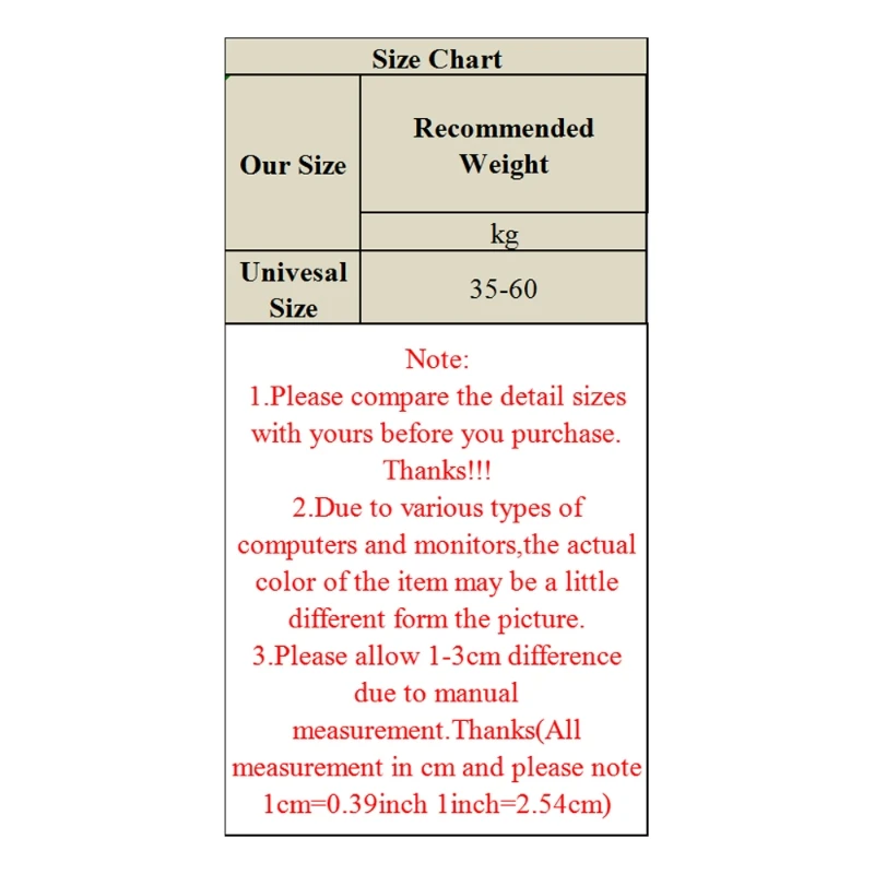 Universal size: size suit for most women lady and girls. Recommended Weight: 35-60kg.