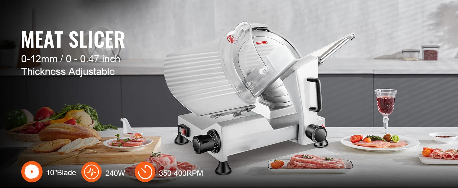 SucceBuy 240W Commercial Meat Slicer Electric Deli Food Slicer "10" Carbon Steel Blade Electric Food Slicer Kitchen Appliances