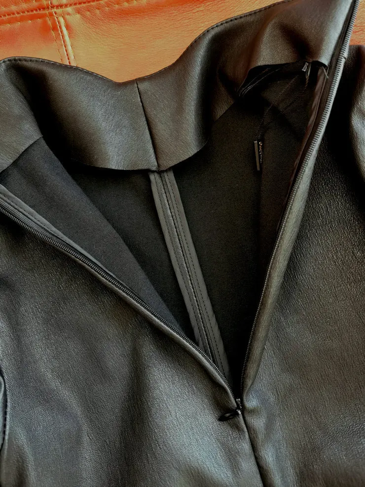 With its sexy Mandarin collar and zipper decoration, this jacket exudes club-ready charm and confidence.